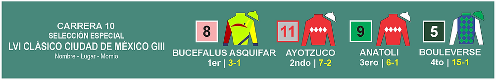 Lo que estás viendo NO contempla las posiciones de salida, jinetes, momios y pesos oficiales